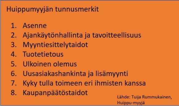 Lähde: Huippu-myyjä, Tuija Rummukainen