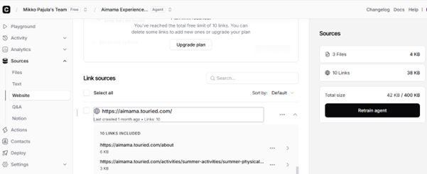 Ilmaisversiolla on helppo kokeilla, mutta erityisesti verkkolinkkien määrä rajoittaa sen käyttöä. Siksi $40 Hobby on suositeltava olla vähintään, jotta voi arvioida chatbotin potentiaalin.