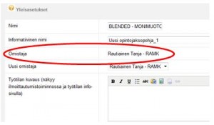 Tarkista aluksi työtilan päätasolta ratas -kuvakkeen alta Yleisasetuksista, että olet työtilan omistaja. Älä tee alla olevia toimenpiteitä työtilalle mikäli et ole työtilan omistaja. Huomioi myös, että jos työtilassa on useampi opettaja (supervisor-oikeudet) on tärkeää sopia yhdessä työtilaa koskevista toimenpiteistä.