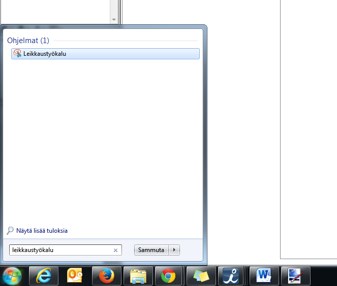 Kohta 2. Mene käynnistä valikkoon ja kirjoita hakusanaksi leikkaustyökalu