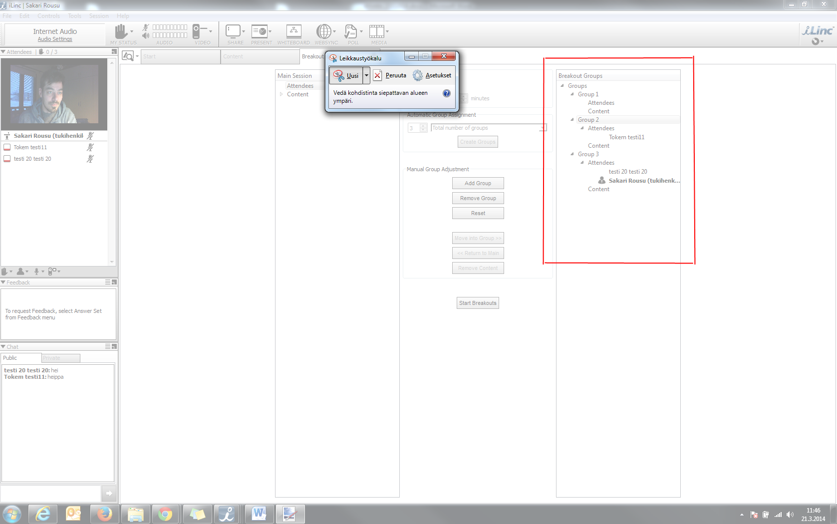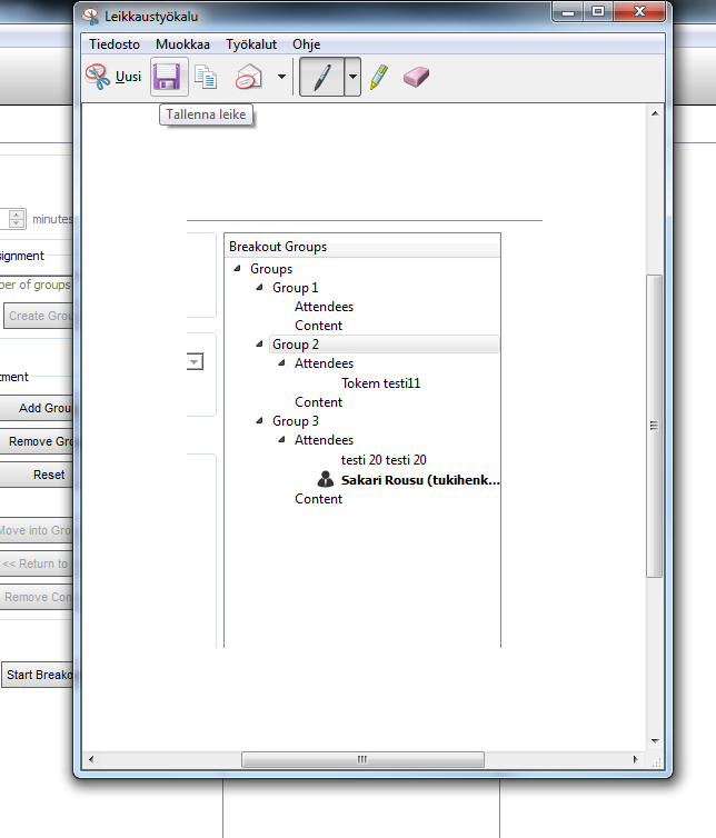 Esimerkinomaisesti otan kaappauskuvan iLincin ryhmätilan nimilistasta ja näytän kuinka kuvatiedosto tallennetaan työpöydälle leikkaustyökalulla. Ja kyllä! Homma on juuri näin helppoa. Sinun ei tarvitse kuin klikkailla ja vedellä hiirellä ja klikkailla vähän lisää. Klik klik!