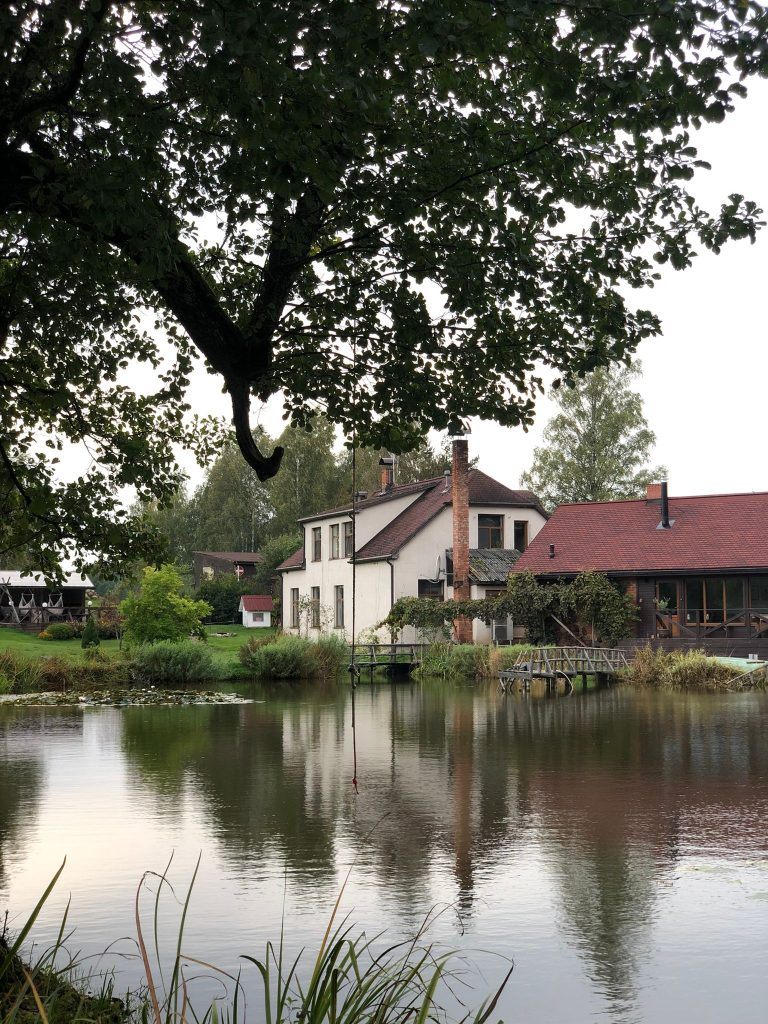 From Ķemeri, we headed towards the Recreation Center “Valguma Pasaule“, where we drove in about 20 minutes. There we were welcomed by staff and a pre-prepared lunch. We ate a lot. Latvian meatball soup, stuffed sandwiches, “pigs in blankets”, Latvian rye bread and coffee with Swiss rolls for dessert… Lunch was really tasty and filling, after which we had a good mood and energy to continue our adventure. The owner of the place told us about the company’s history, activities and values. She showed us around the hotel, which was located next to a beautiful pond and forest.