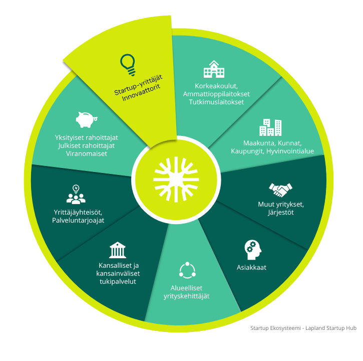 Lapland Startup Hub pyrkii luomaan lapin alueelle elinvoimaista ja kaikkien osapuolten toimintaa tukevaa startup-ekosysteemitoimintaa, joka koostuu lukuisista yrittäjyyttä tukevista toimijoista, organisaatioista, asiantuntijoista, rahoittajista sekä päättäjistä.