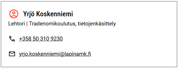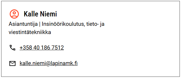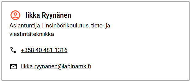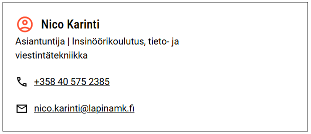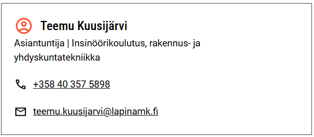 **Asiantuntijoiden esittelykuvat on toteutettu tekoälyavusteisesti, joten ne eivät täysin vastaa todellisuutta. Kuvissa esiintyvät henkilöt ovat hyväksyneet omien kuviensa käyttämisen verkkosivuillamme tässä muodossa. Tekoälymuotokuvat on työstetty Lapin AMKin henkilökuntakuvista käyttämällä Sora- ja Photoshop-sovellusten tekoälyominaisuuksia siten, että henkilökohtaisia tietoja kuten nimiä, tunnuksia tai työpaikkatietoja ei ole käytetty kehotteissa.