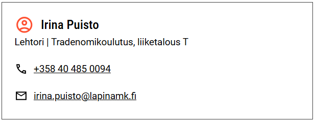 Irina Puisto vie opiskelijat ja hanketiimit kohti vastuullista ja dataohjautuvaa tulevaisuutta. Lapin AMKin lehtorina hän opettaa talouden ja johtamisen taitoja mutta on myös perehtynyt tekoälyn tuomiin mahdollisuuksiin työelämässä. Hankkeeseen Irina tuo mukanaan ymmärryksen siitä, miten tekoäly voi auttaa paremmassa päätöksenteossa ja arjen sujuvoittamisessa.