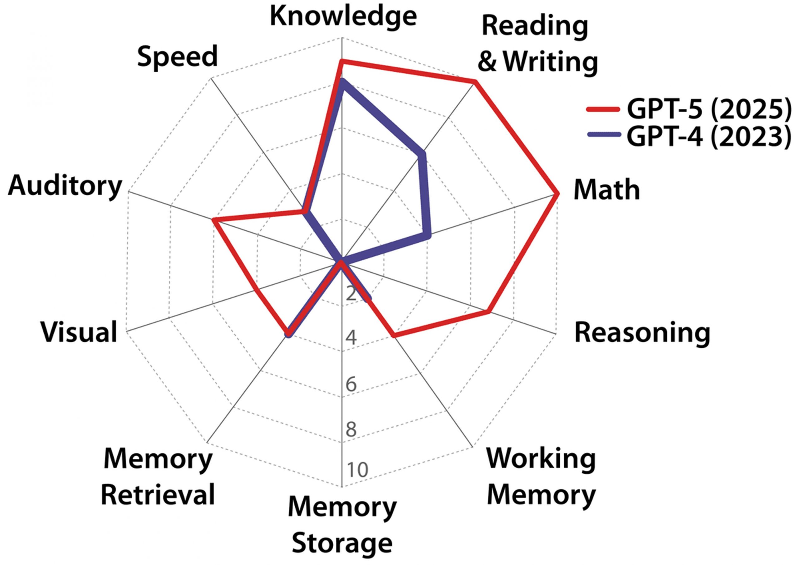 Kuvio 1. GPT-4- ja GPT-5-mallien kyvykkyydet (Hendrycks ym. 2025)