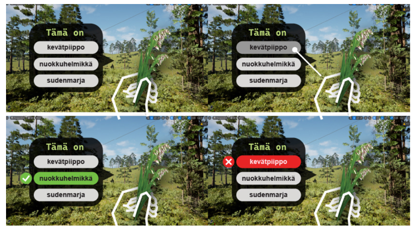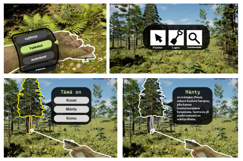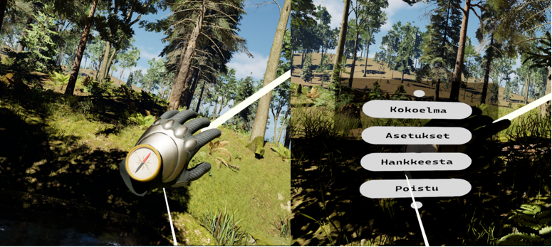 Virtuaalisen hahmon ranteeseen kiinnitetty menu mahdollistaa nopean ja miellyttävän tiedonsaannin kaikissa sovelluksen ympäristöissä, mikä syventää immersiota ja parantaa käyttökokemusta. Lisäksi Metsä VR:n osalta on alettu kartoittaa moninpelitoiminnallisuuden mahdollisuuksia REDU:n pyynnöstä, mikä avaa uusia näkökulmia oppimisen ja yhteistyön tukemiseen virtuaalisessa ympäristössä.