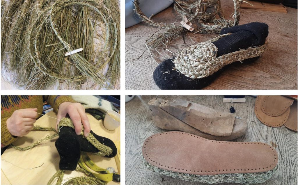 It is a lot of physically hard work to make grass shoes and I have gained a huge amount of respect for those who used to make shoes. It is also a continuing learning process, even after my shoes are done, which in itself is both satisfying and challenging. The whole process of making shoes from grass is a multisensory experience: the dried sedge has a light gray-green color, and at the same time it is smooth and strong and smells fresh, with a hint of lemon. When working with it, it is rustling and feeling like hay.