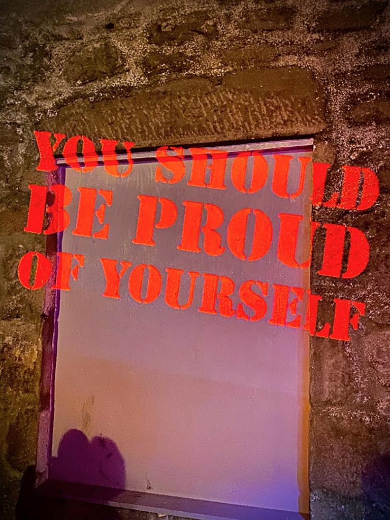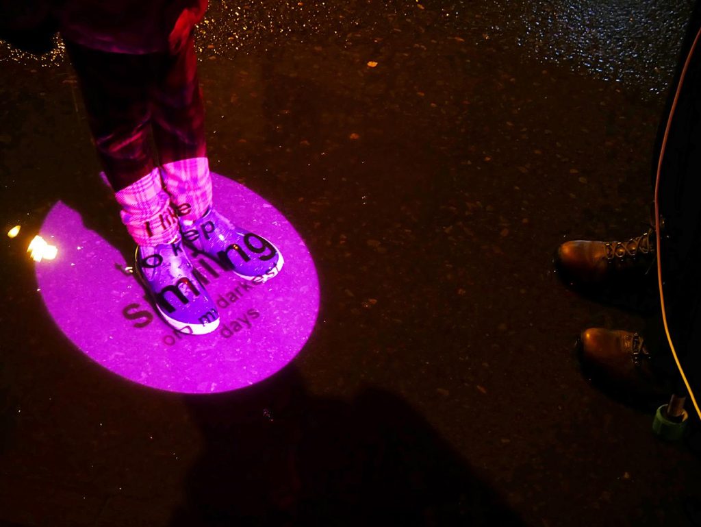 Two walkabouts not only enabled the group to test their work in the public sphere but also to use projected light as a way to build on the ‘lighthouse’ theme embedded within Home and Belonging. Equally important, walkabouts formed a way for the group to get together while also complying with the requirement to meet outdoors during the coronavirus pandemic continuing into autumn 2020 and winter 2021. New ideas emerged as momentum increased over time; some participants experimented with conveying particular emotions and worked to develop their filmmaking skills. Engagement, experimentation and collective learning deepened during walkabouts as participants took turns directing the projector, constantly identifing new places to project, testing different surfaces and considering the meaning of images in relation to the sites where they were projected.