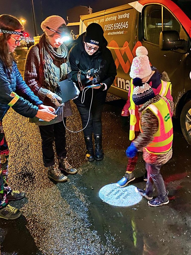 The mobile film exchange, Swap Shots, offered a new way for care experienced young people in Shetland to creatively engage with each other during lockdown restrictions in the coronavirus pandemic. Project participants made 6-second films over a three week period, shared and chatted about them on WhatsApp, and then came together in ‘walkabouts’ to project them onto buildings in Lerwick, Shetland’s main town, experimenting with scale, surface and context by using a portable projector.