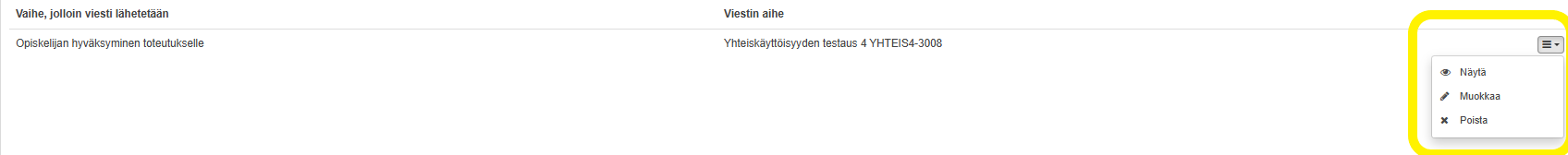 Voit esikatsella viestiä, muokata viestiä ja poistaa viestin. Viestin muokkaus ja poisto ovat mahdollisia siihen saakka, kunnes toteutuksen ilmoittautuminen alkaa.