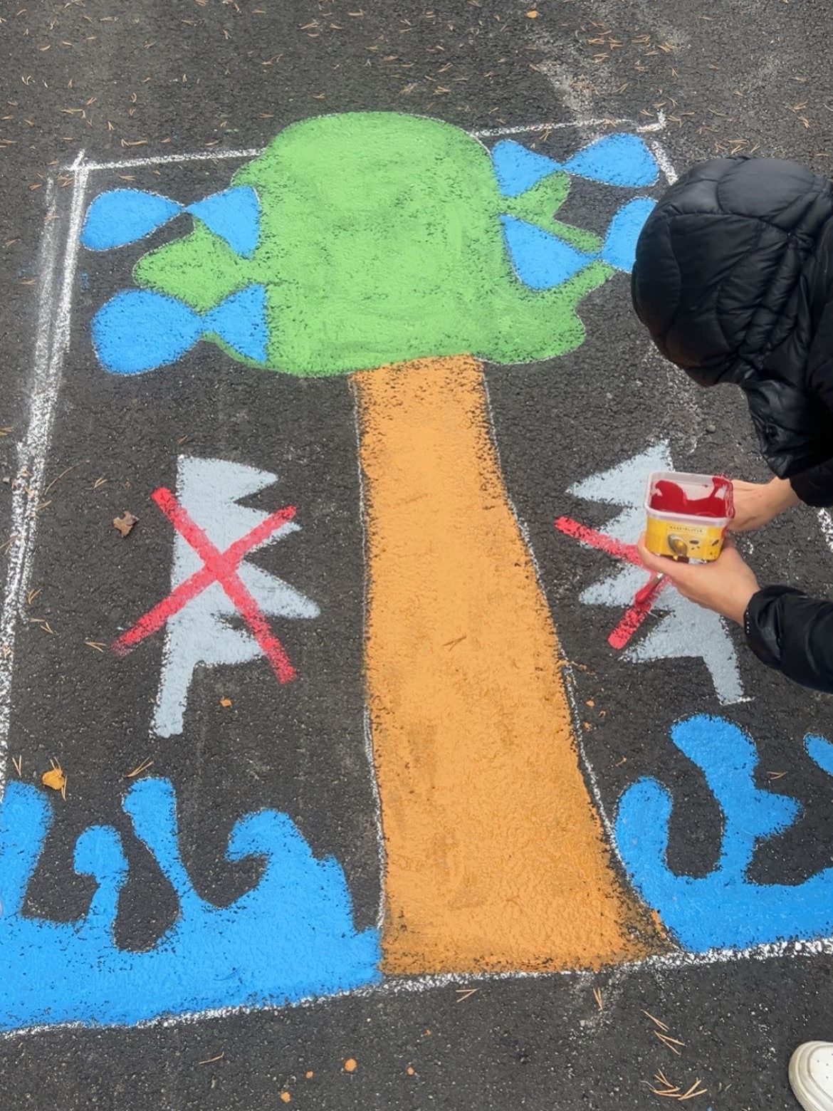 We were very pleased with our painting that symbolizes trees and fish that should not be cut down or killed.